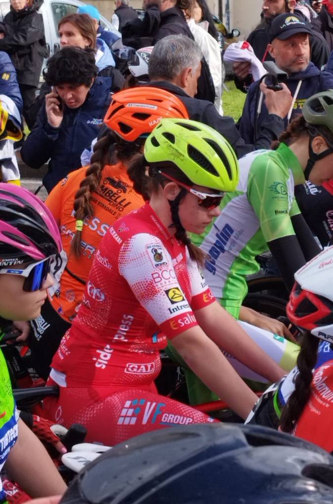 In un percorso duro a causa di un’imprgnativa salita da ripetere più volte, è stata brava Giulia Trombin a terminare la gara delle Esordienti anche se leggermente staccata dal gruppo principale, perché ostacolata da una caduta.