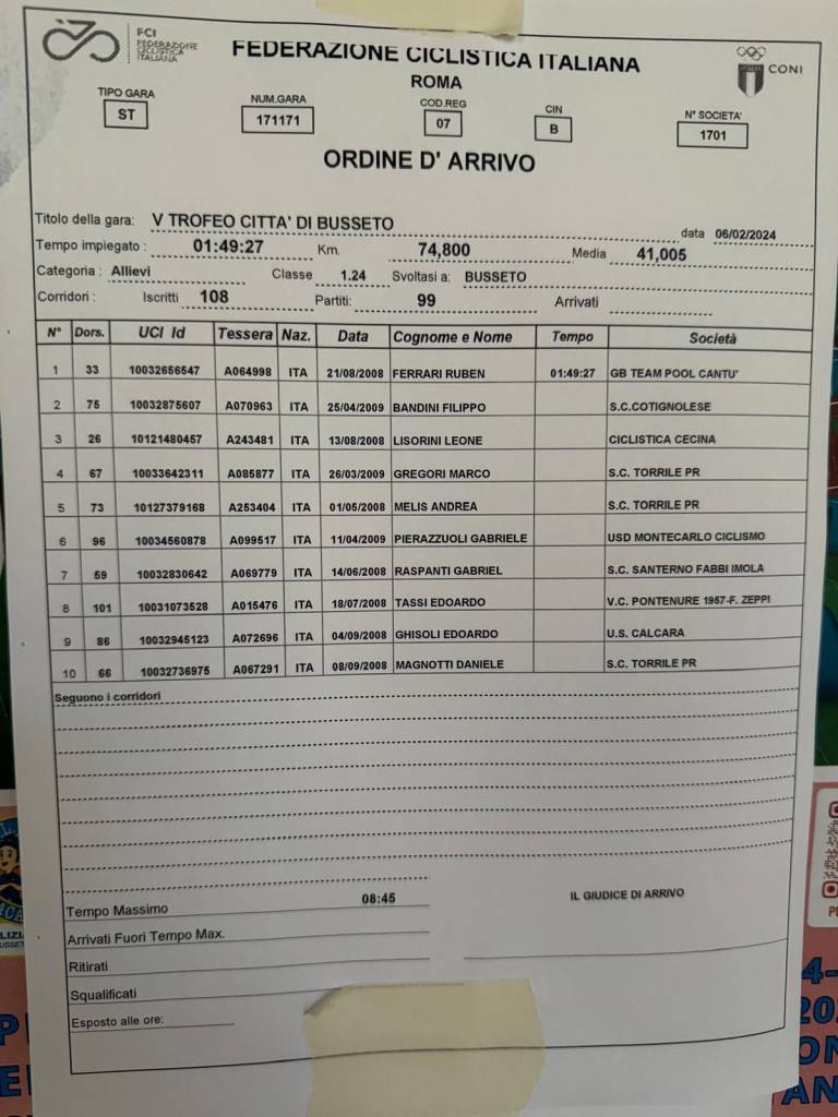 Purtroppo per noi solo Immovilli ha concluso la prova, mentre Cavatorta è stato costretto al ritiro a causa di una caduta, Caroppo, Cattini, Nigliazzo e Naccarato sono rimasti vittime dell’alta andatura.