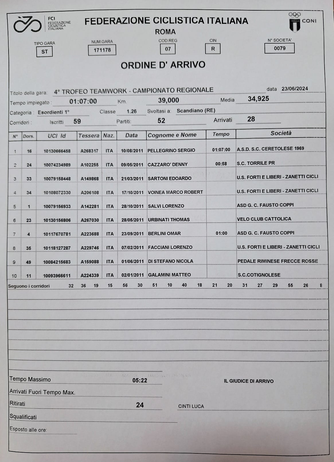 ESORDIENTI – CAMPIONATO REGIONALE – Scandiano (RE), 23.06.2024