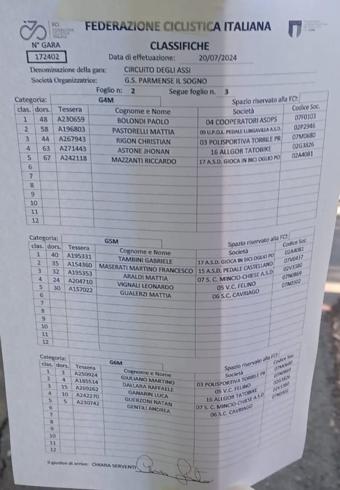 GIOVANISSIMI – Fontanellato (PR), 20.07.2024