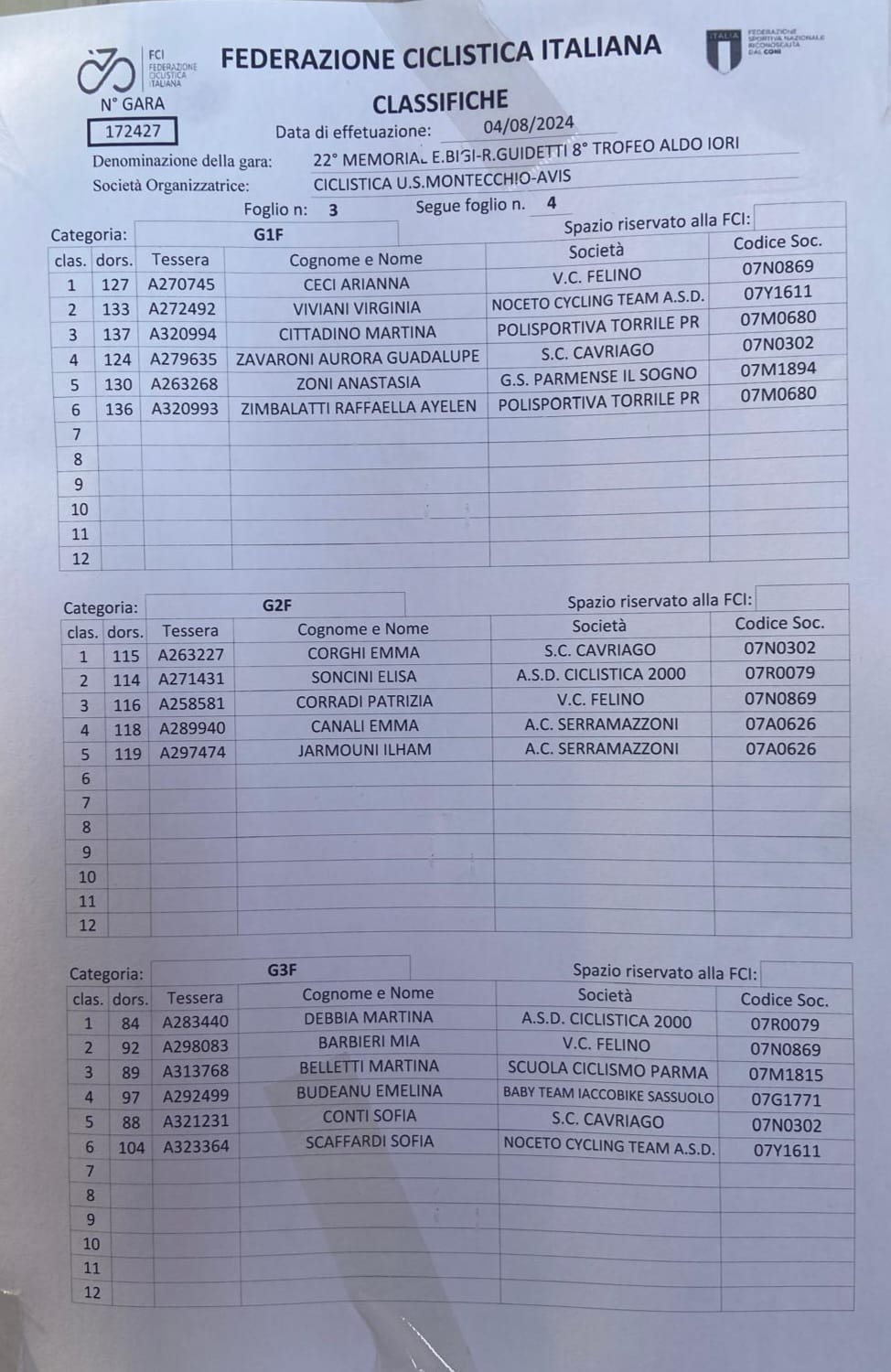 GIOVANISSIMI – Montecchio Emilia (RE), 04.07.2024