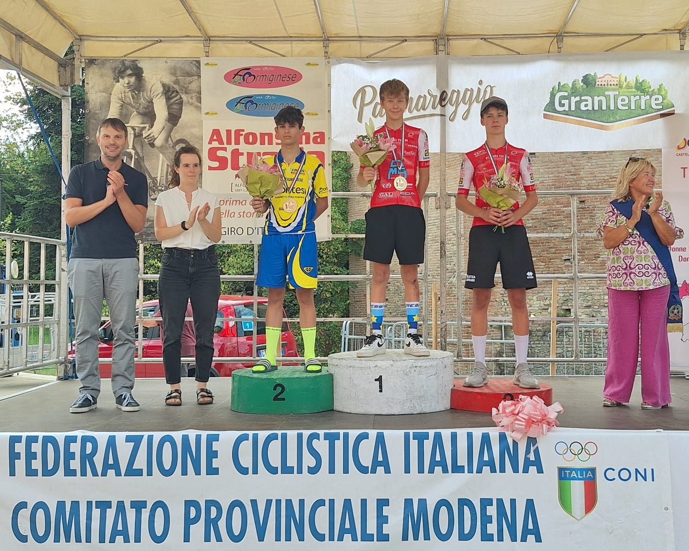 Alberto Gentili conquista Formigine con una grande azione nel finale di gara ed ottiene la sua prima vittoria da Esordiente, 3° posto per Leonardo Manfredi.