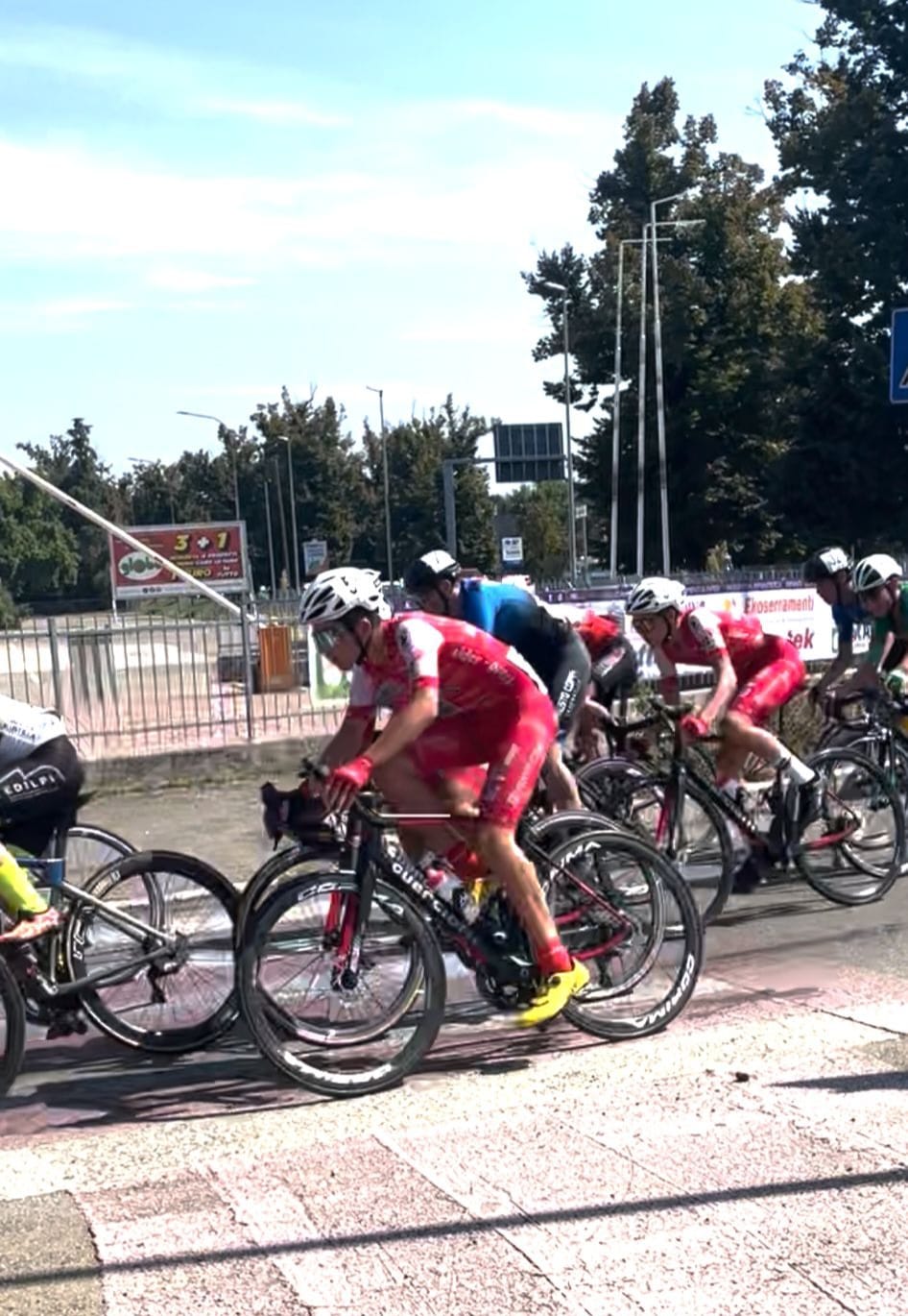 A poco più di un km dall’arrivo, quando i velocisti stavano lottando per la posizione, in testa al gruppo è avvenuta una grave caduta che ha tolto di scena numerosi concorrenti, tra cui i nostri Manfredi, Pivetti e Gentili.