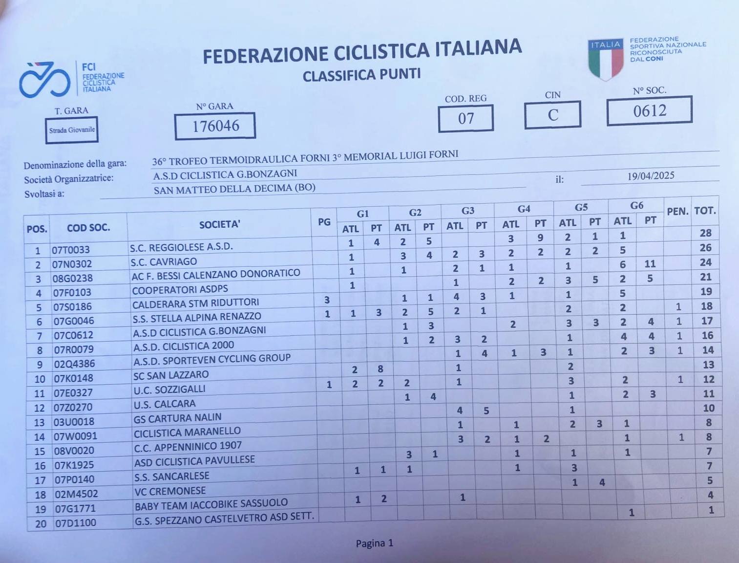 Squadre reggiane corsare nel Bolognese, la classifica a squadre vede infatti al 1° posto la Reggiolese con 28 punti ed al 2° posto la S.C. Cavriago con 26 punti.
