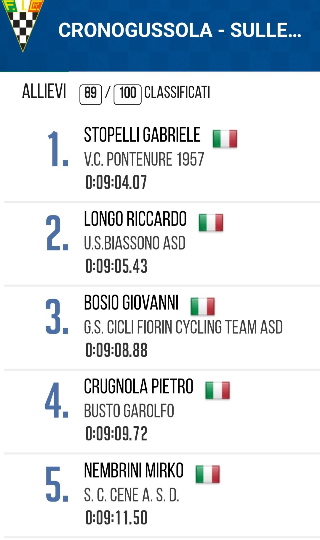 Stopelli del Pontenure è risultato il più veloce con il tempo di 9’04”,07 alla velocità media di 46,32 km/h e si è aggiudicato il titolo della regione Lombardia. Al secondo posto a poco più di 1″ l’Allievo primo anno. Longo del Biassono, completa il podio Bosio del Cicli Fiorin.