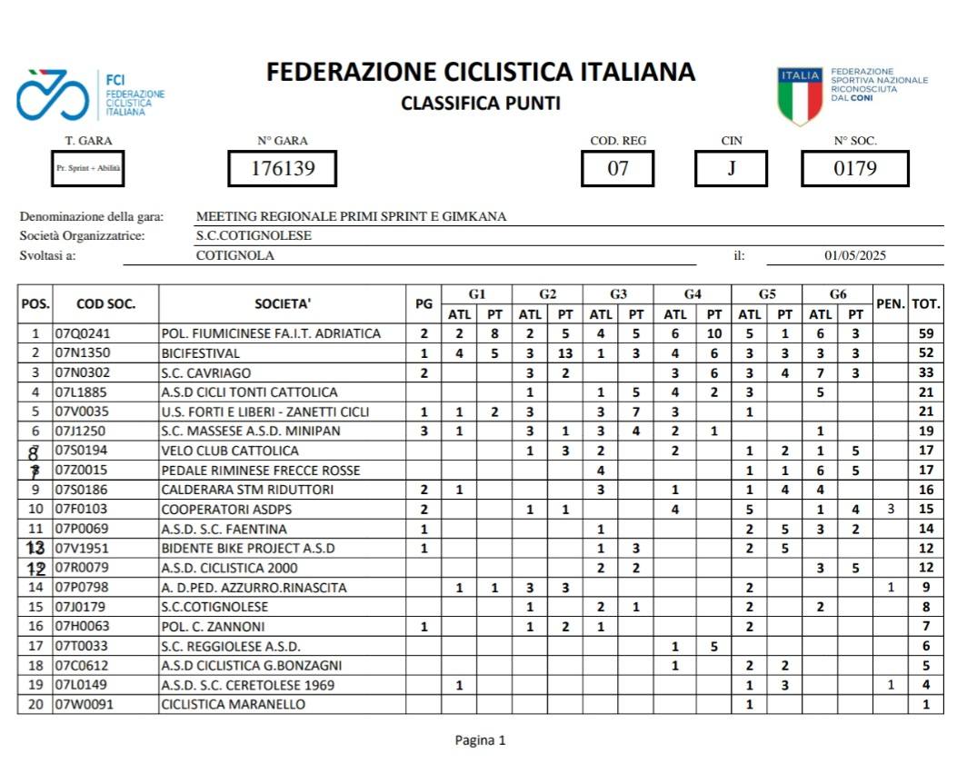 S.C. Cavriago 3° società in Emilia Romagna alle spalle di Bicifestival e Fiumicinese, questo il verdetto del meeting regionale sprint e gimkana che si è disputato a Cotignola il 1° maggio.