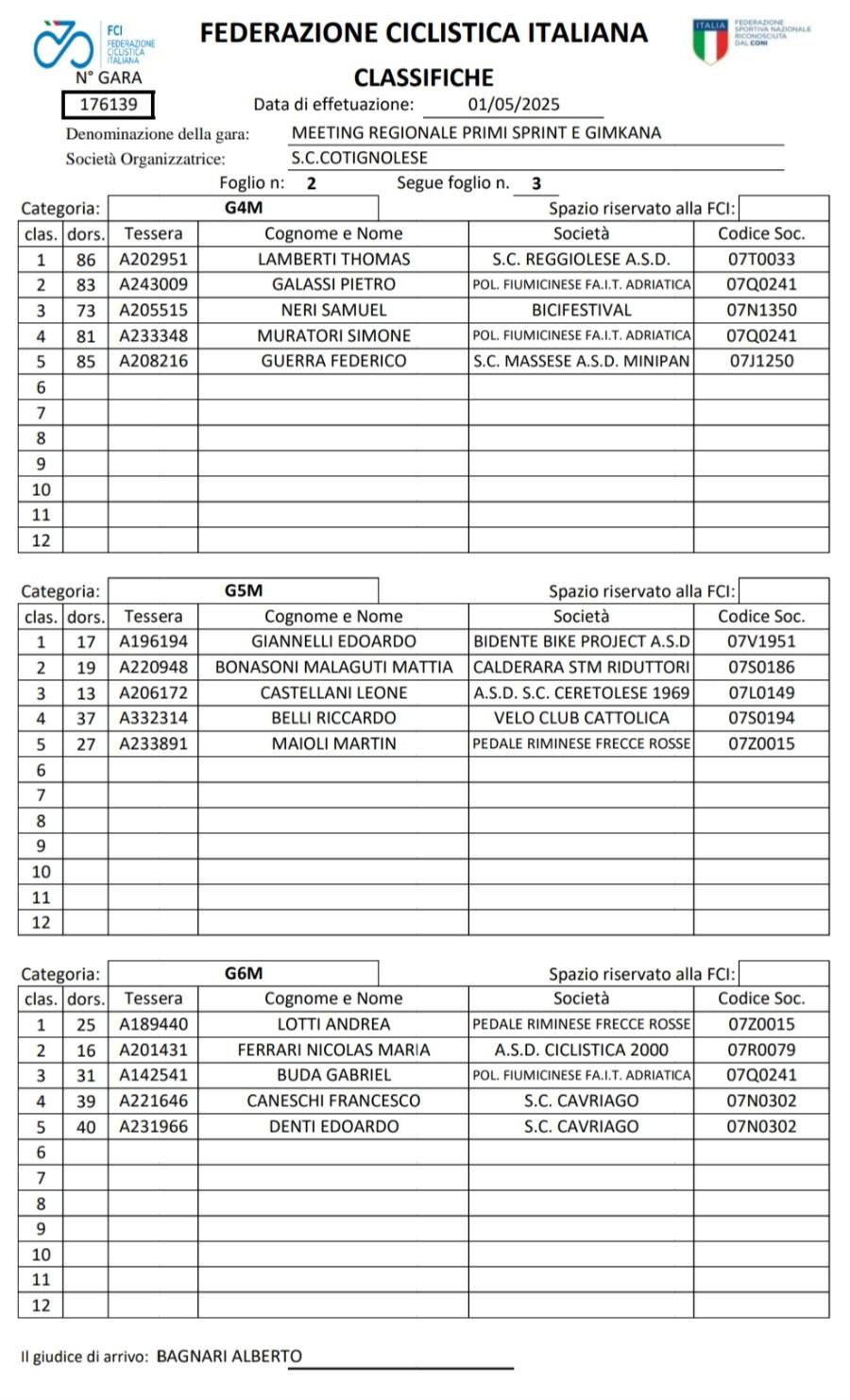 GIOVANISSIMI – Meeting regionale sprint e gimkana, Cotignola (RA), 01.05.2025
