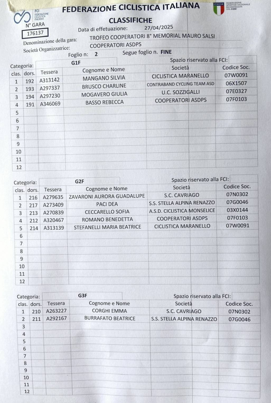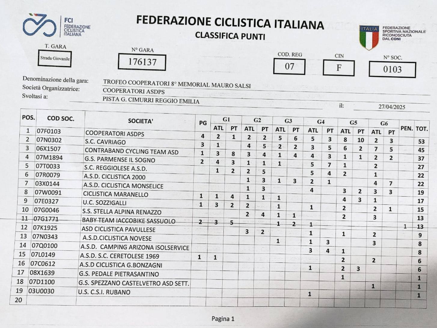 Solo la pioggia ha tentato di rovinare la bella giornata di festa e di sport organizzata da Cooperatori Junior Team, ma poi si sono disputate tutte le gare in programma nell’8° Memorial Mauro Salsi.