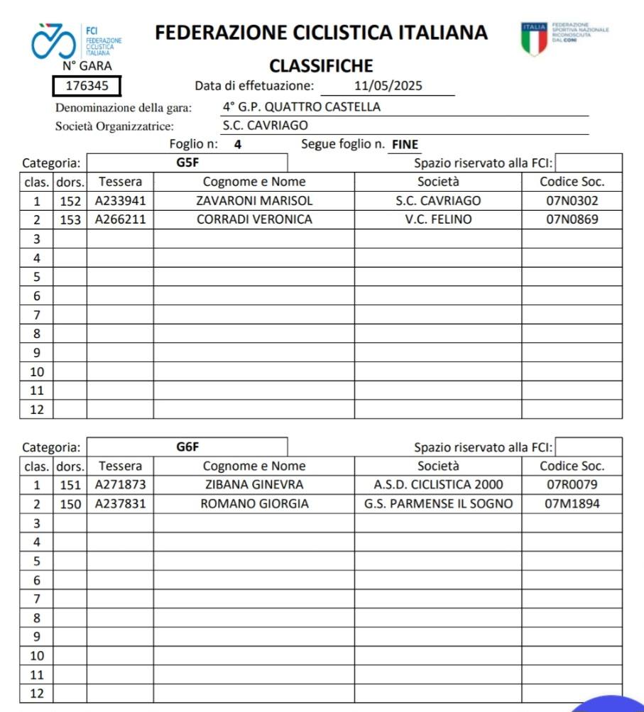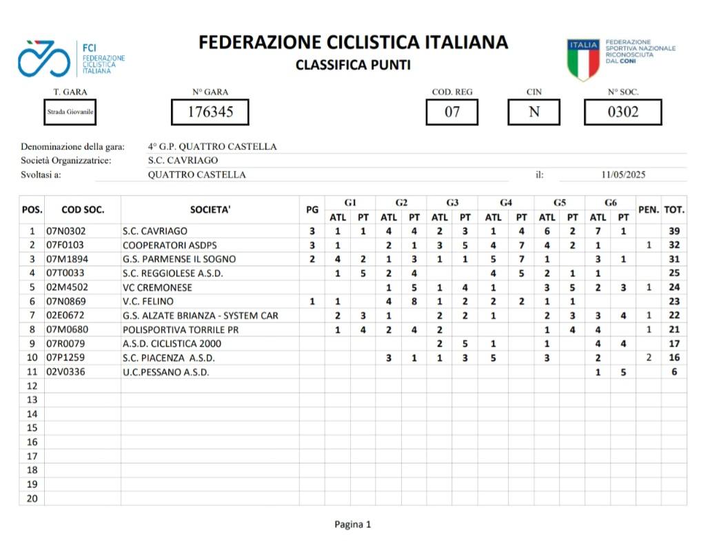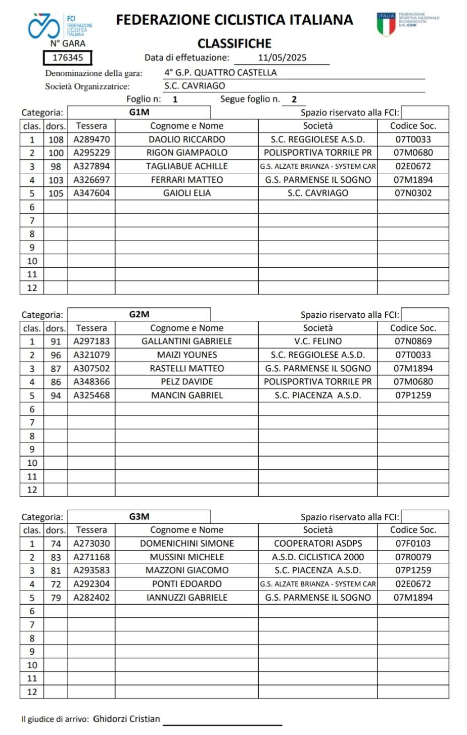 GIOVANISSIMI – 4° G.P. Quattro castella – 3° memorial Amos E Remo Gualerzi – Quattro castella (RE), 11.05.2025