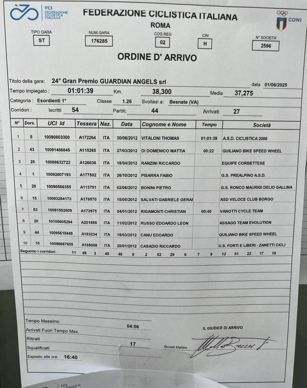 3° Leonardo Manfredi 9′ 56″,47 a 44,9 km/h