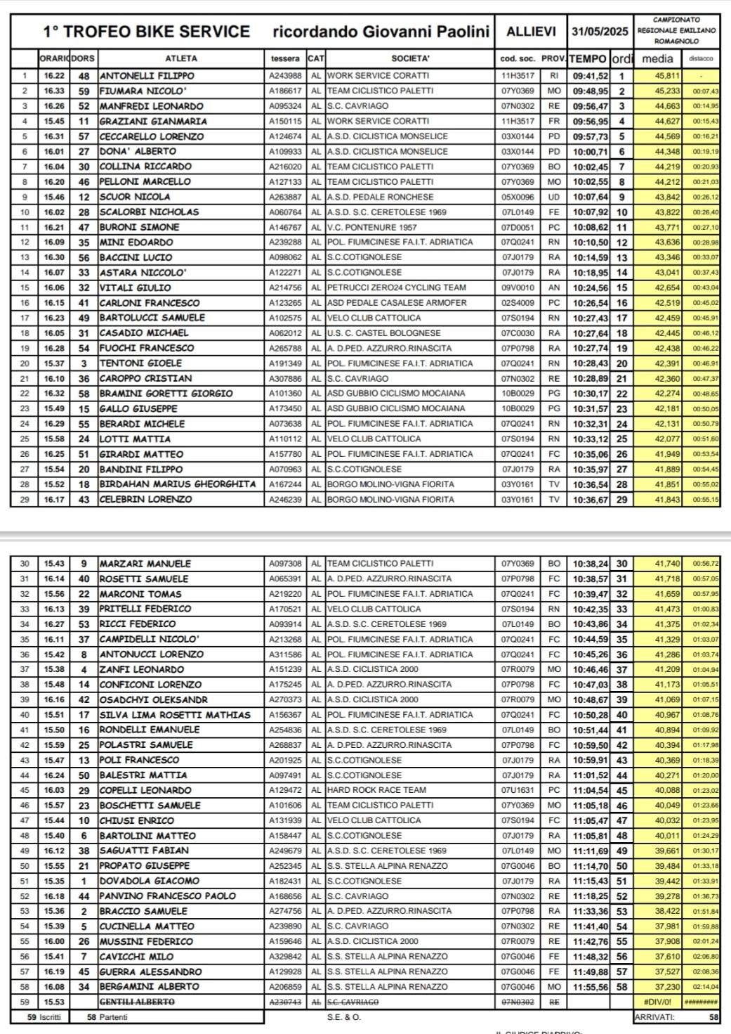 Si è svolta sabato 31 maggio a San Lorenzo di Lugo (RA) la gara a cronometro individuale valevole come Campionato Regionale dell’Emilia Romagna; al via 59 allievi classe 2009 e 2010, provenienti anche dal Veneto e dal Lazio.