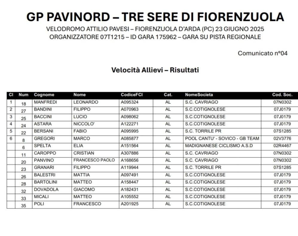 ALLIEVI – Velodromo Attilio Pavesi (Fiorenzuola d’Arda), 23.06.2025