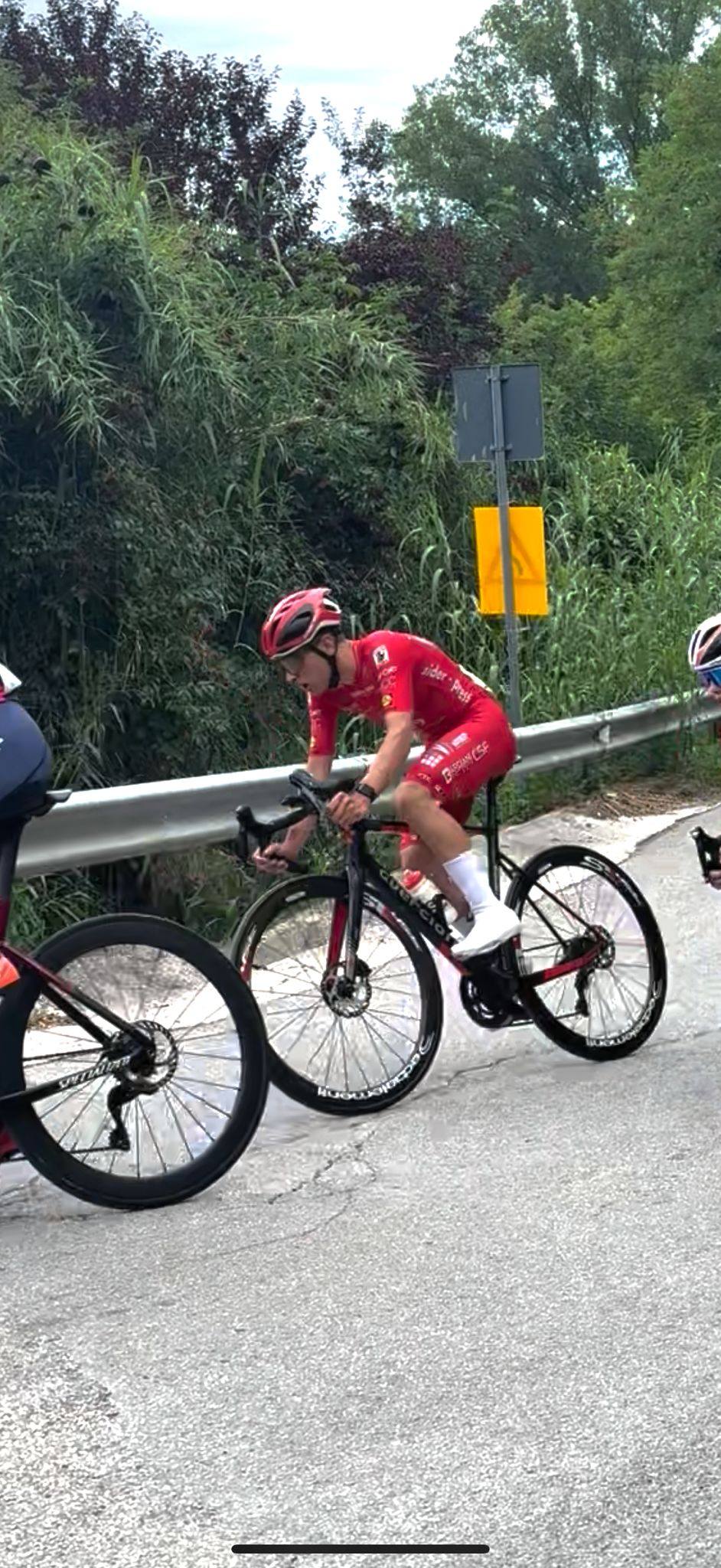 Molto bene Cristian Caroppo che ha scollinato nel primo gruppetto ed è arrivato 13°, peccato perché ostacolato in volata da una caduta.