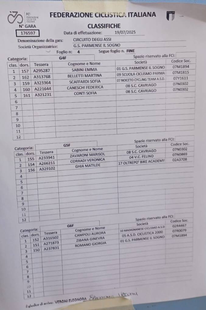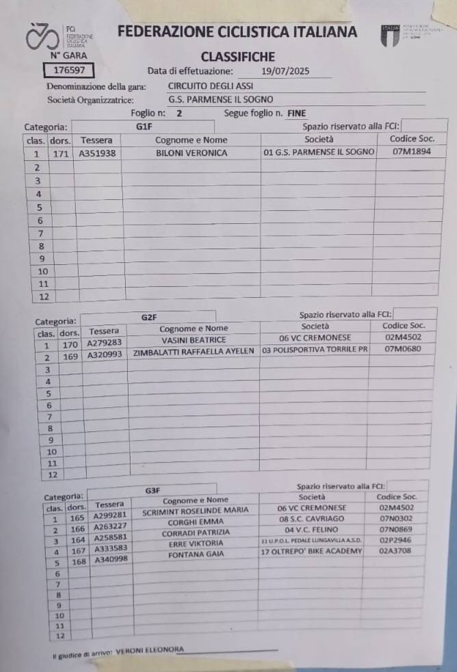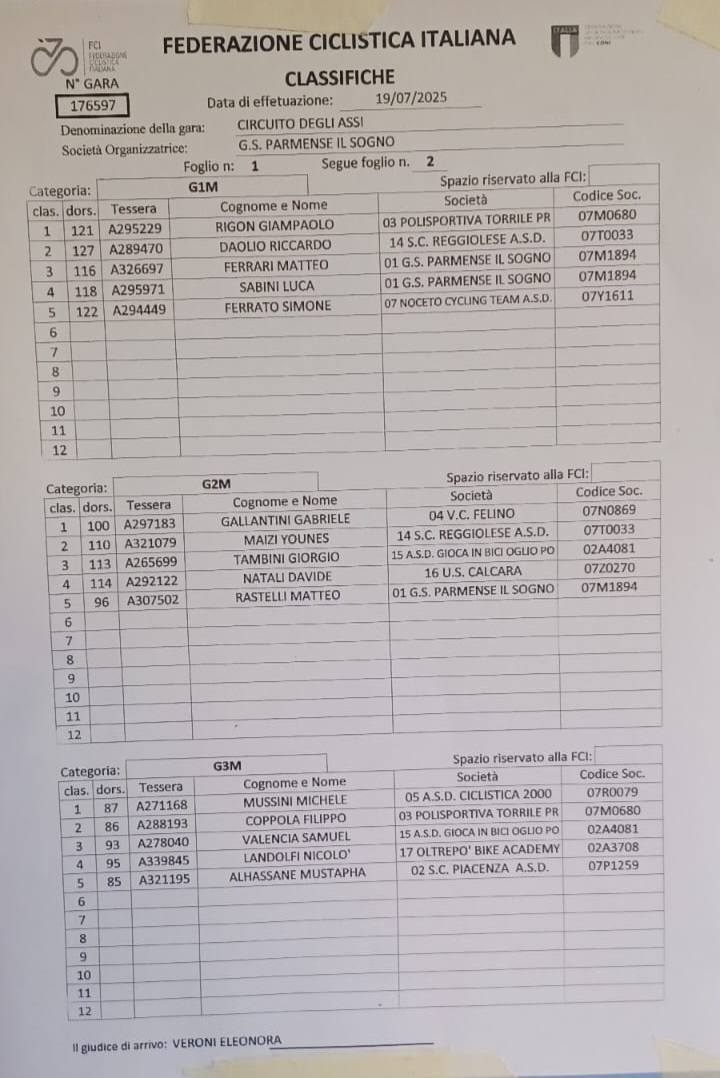 GIOVANISSIMI – Fontanellato (PR), 19.07.2025