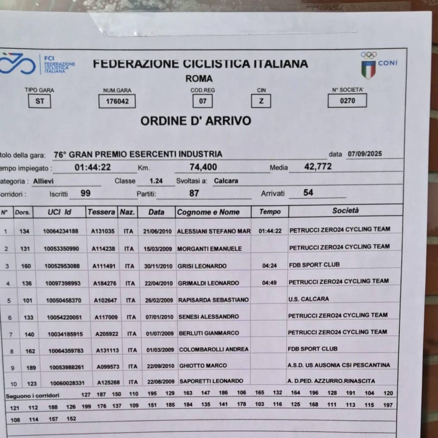 Con De Rensis fuori dai giochi per una foratura, i due atleti Petrucci Zero24 hanno staccato Grisi e sono arrivati insieme al traguardo con un vantaggio di 4′ 34″, primo Alessiani, secondo Morganti.
