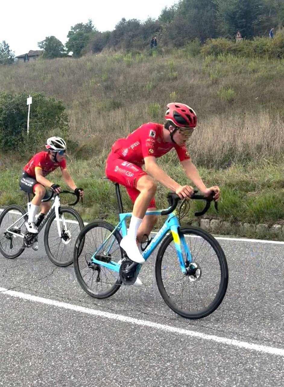 Leonardo Manfredi, al rientro dalle gare dopo una pausa, ha perso le ruote del gruppo sull’ultima salita ai -10 km ed è stato poi costretto al ritiro dal fine corsa.