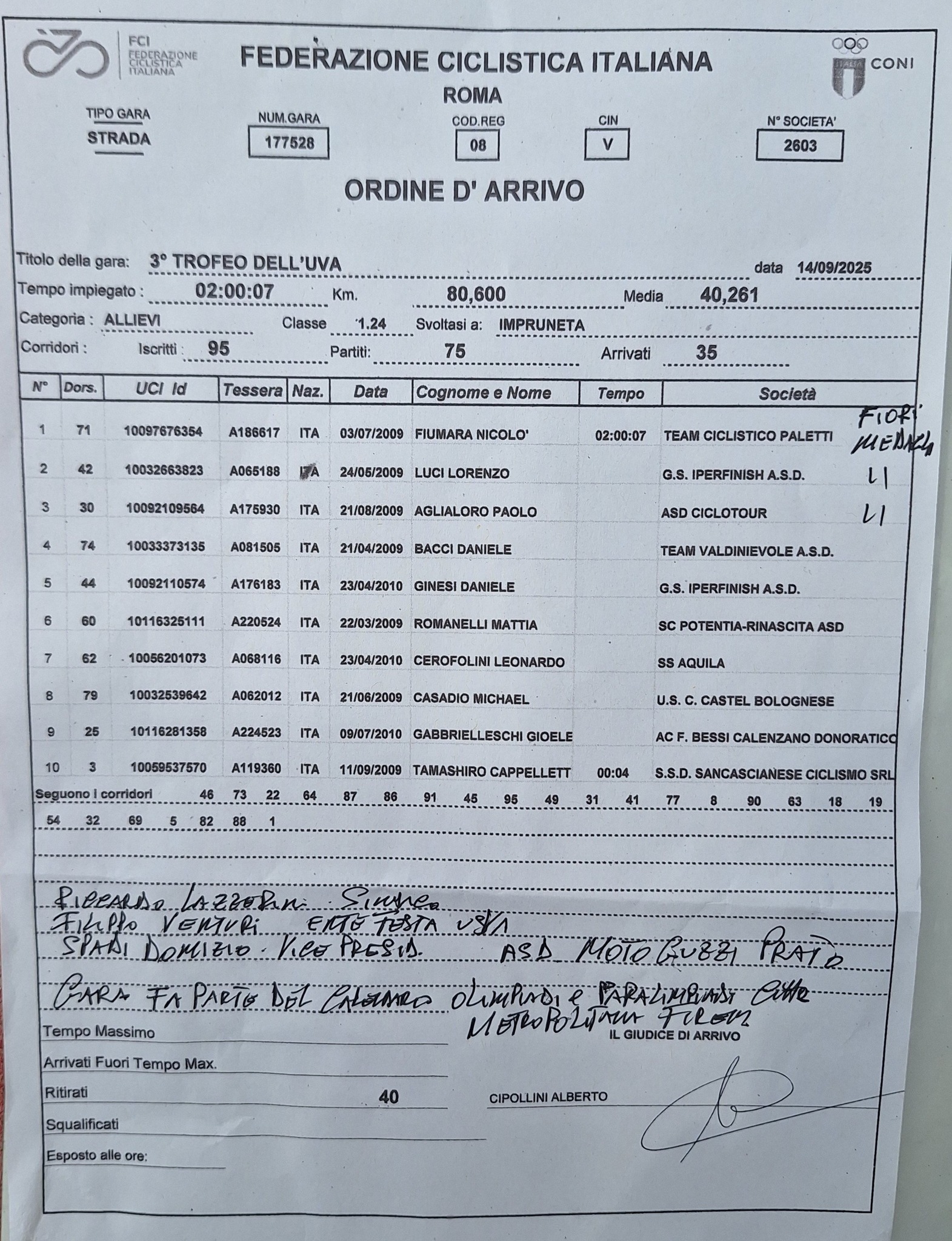 ALLIEVI – Impruneta (FI), 14.09.2025