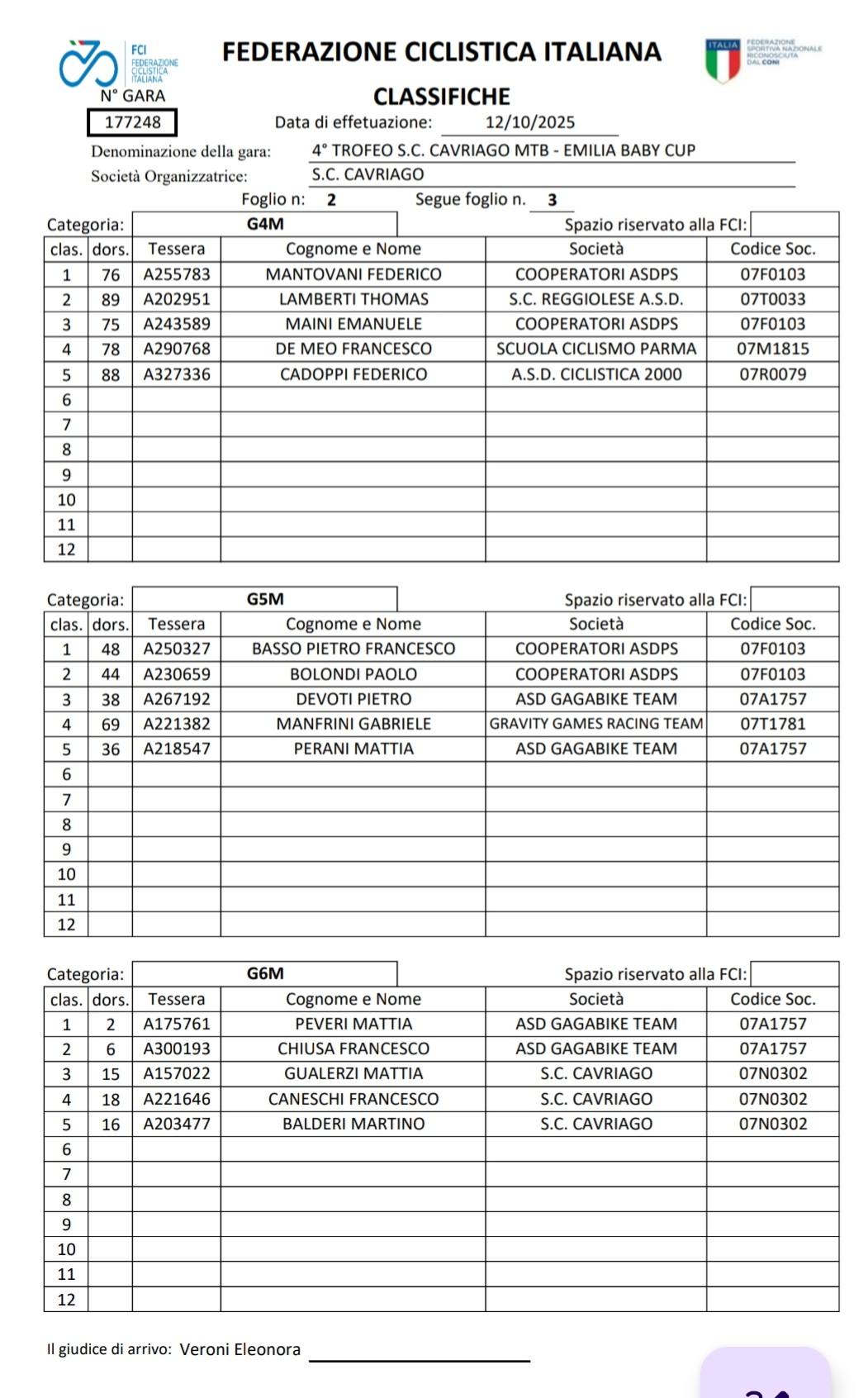 GIOVANISSIMI – Cavriago (RE), 12.10.2025