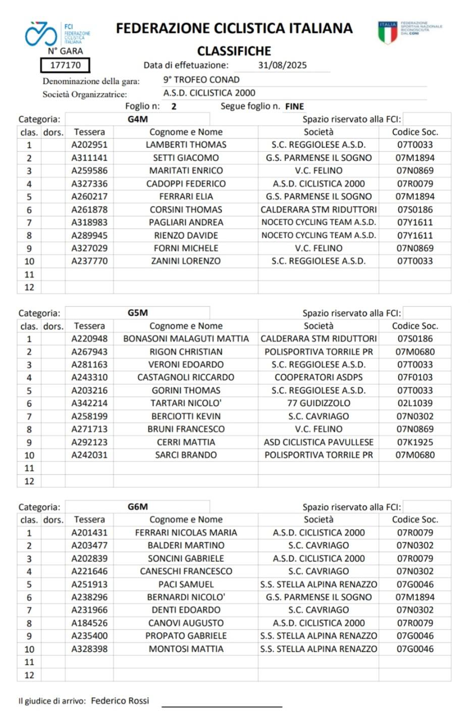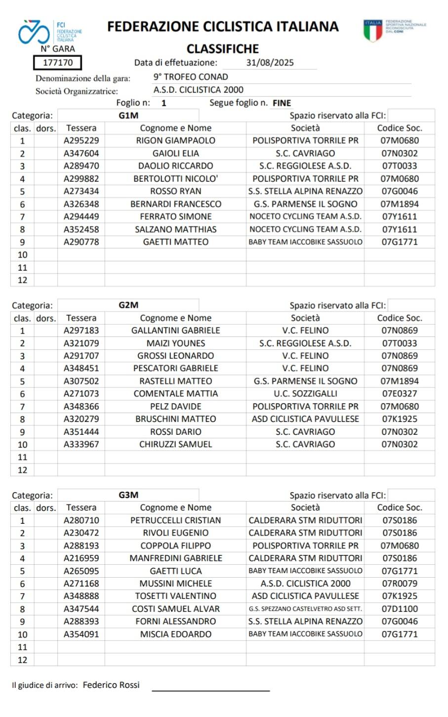 Un plauso ed un ringraziamento a Ciclistica 2000 Litokol per l’organizzazione.