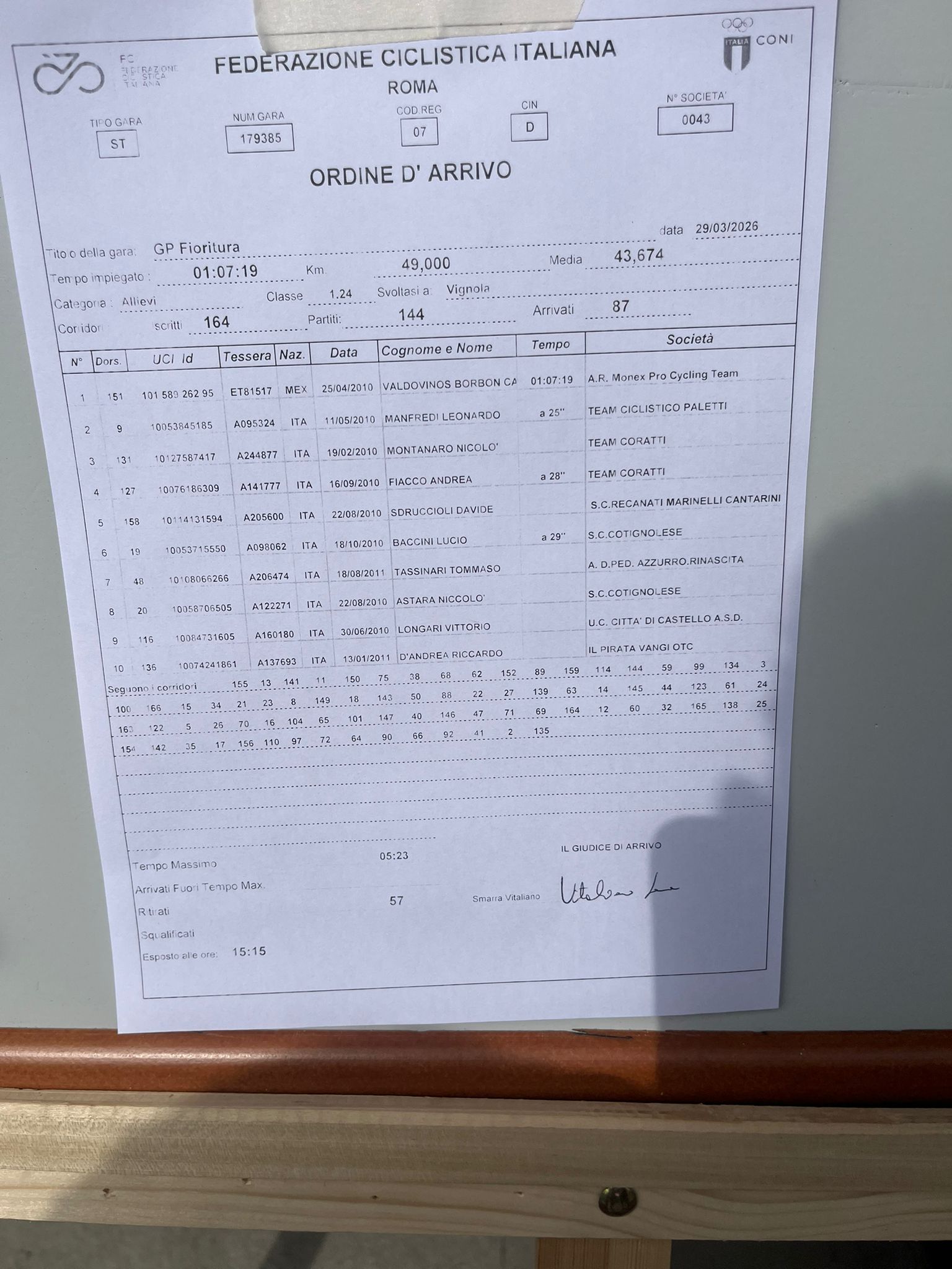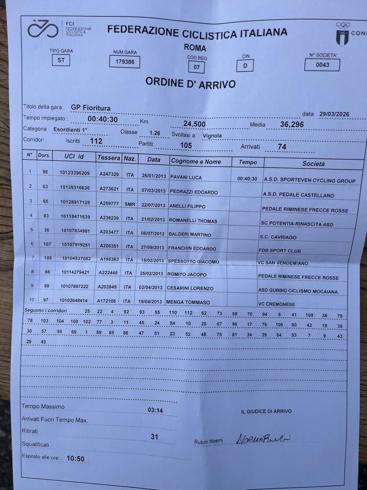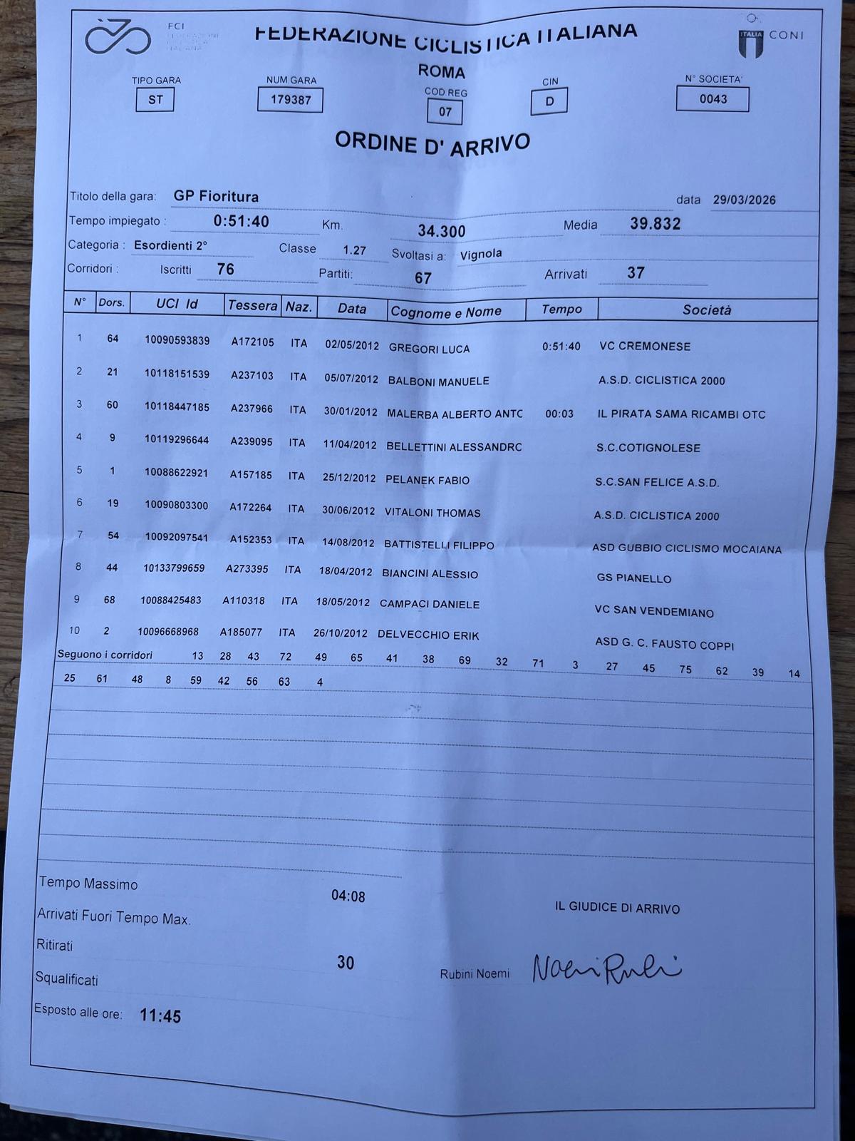 Complessivamente una buona prestazione di tutta la squadra, a conferma di quanto visto a Cadelbosco domenica scorsa. Sempre presenti nei tentativi di fuga e protagonisti anche allo sprint finale, dove arriva la prima top 5 stagionale grazie a Martino Balderi ![]()