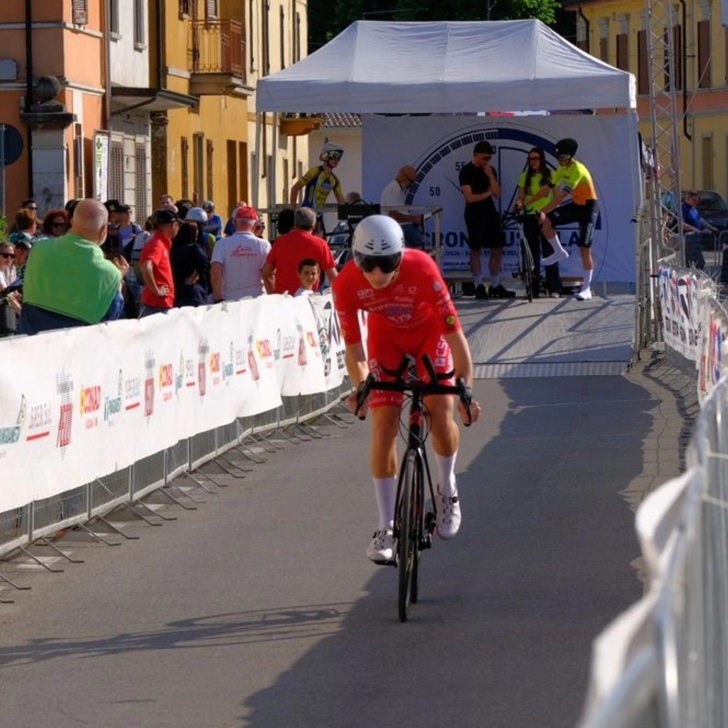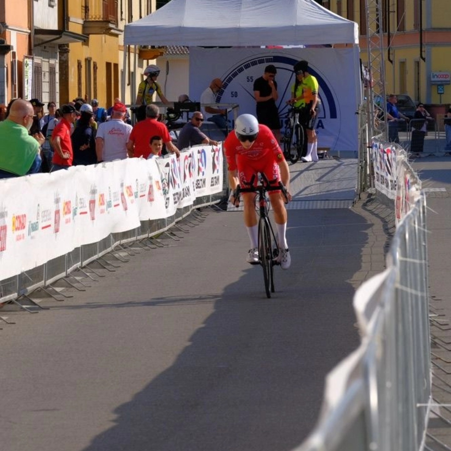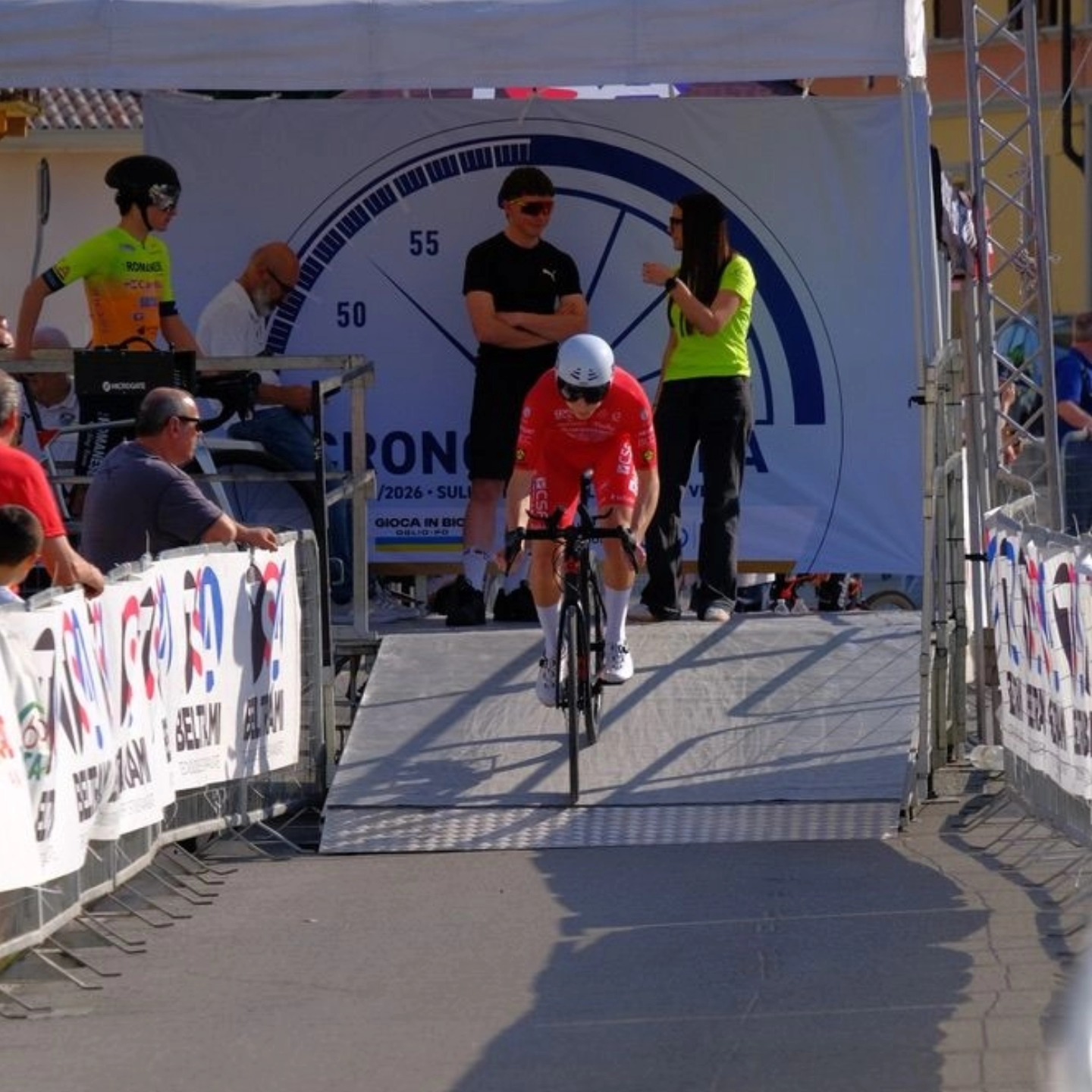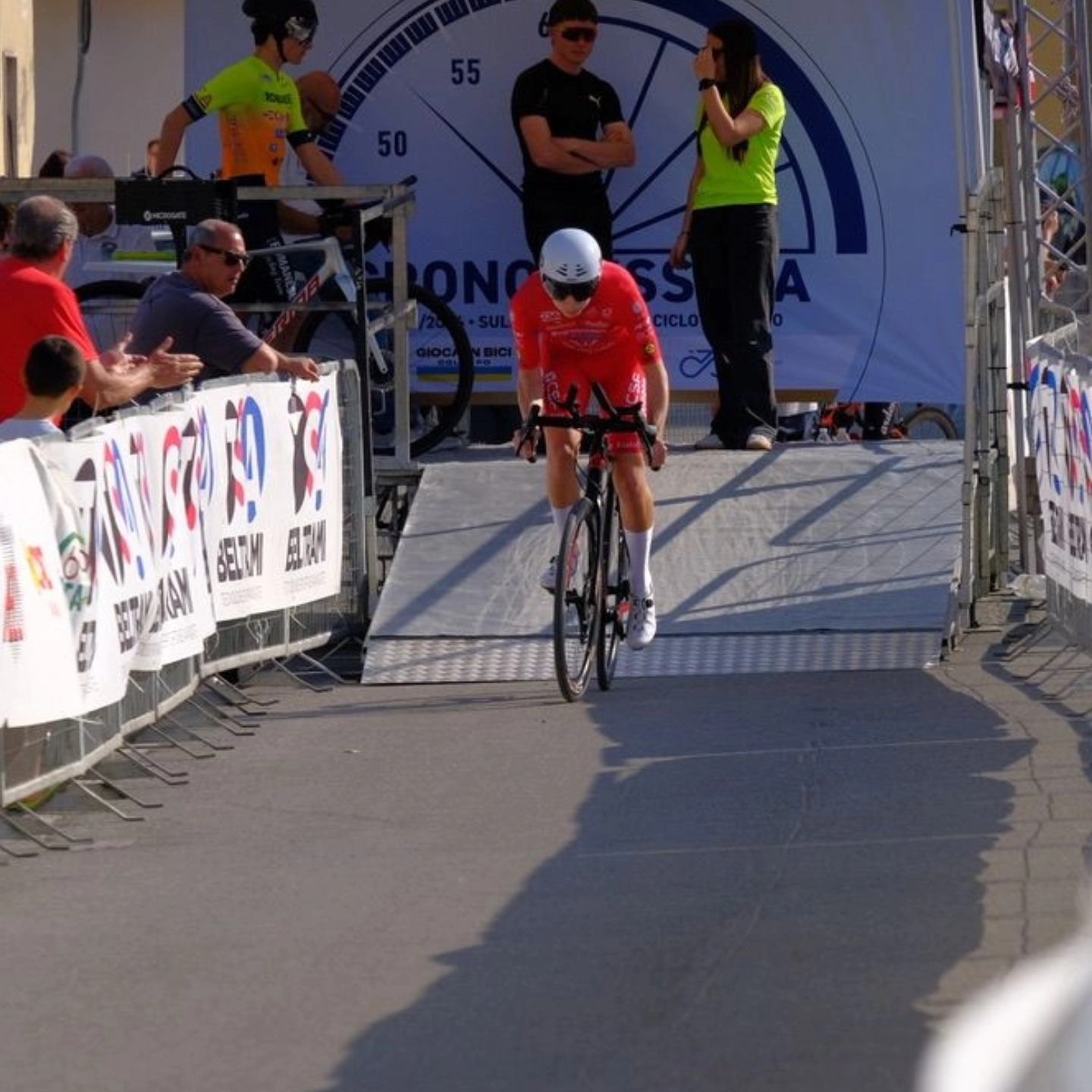 Nella crono Allievi, Gentili conclude in 9’38” alla media di 43,6 km/h: una buona prestazione, non sufficiente però per entrare nei piazzamenti.