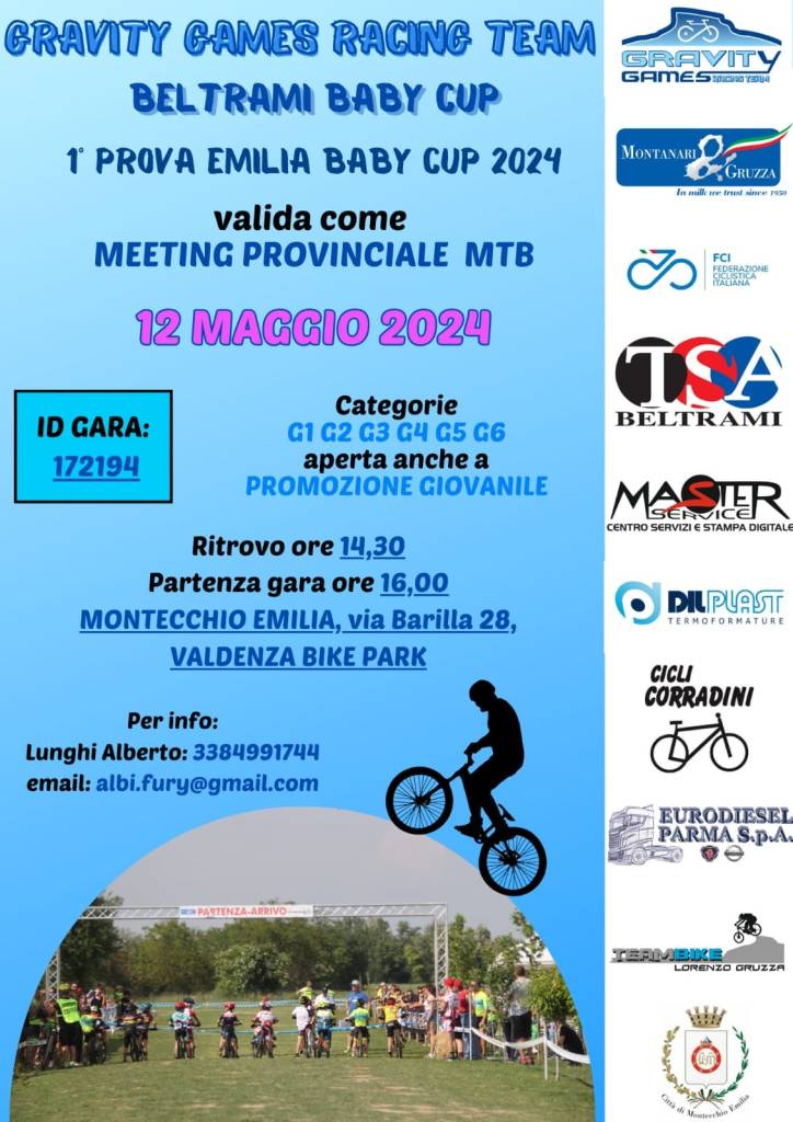 Domenica 12 maggio 2024 i nostri Giovanissimi saranno impegnati alla 1° prova Emilia Baby Cup 2024 valida come Meeting Provinciale MTB.
