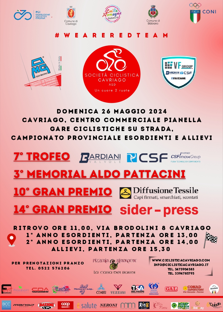 Domenica 26 maggio 2024 i nostri Allievi gareggeranno nella gara di casa a Cavriago al 7° TROFEO BARDIANI VALVOLE – CSF INOX – 3° MEMORIAL ALDO PATTACINI.
