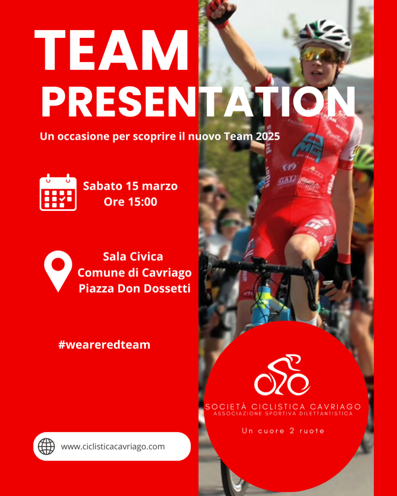 Sabato 15 marzo 2025 presso la sala civica del comune di Cavriago alle ore 15.00 si terrà la “Presentazione Squadre agonistiche giovanili”.